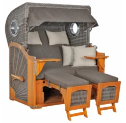 Strandkorb Komplettset Koos Mahagoni PE Grey Dessin Uni Grau