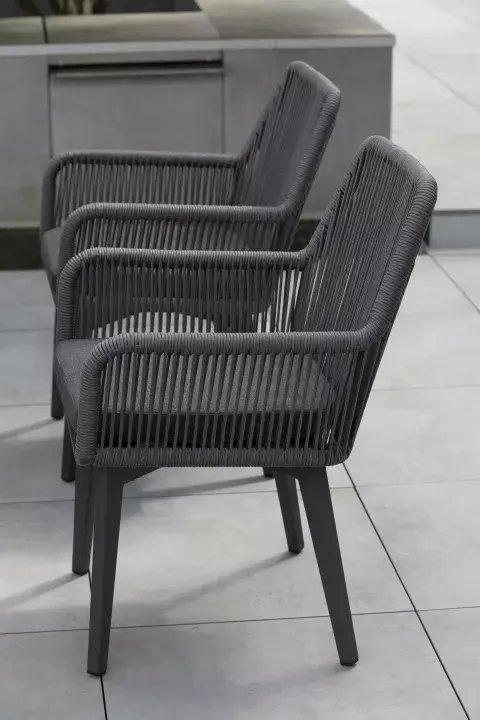 Unser Dining Sessel, gefertigt aus witterungsbeständigem Aluminium und im klassischen Design gehalten, erfüllt höchste ästhetische und praktische Ansprüche. Neben seiner edlen Optik unterstützt unser Modell auch eine gesunde und entspannte Sitzposition. Egal, ob Sie ausgiebige Familienessen oder gemütliche Erholungsmomente im Freien genießen möchten – der Sessel bietet mit seiner bequemen Bespannung aus Rope höchsten Komfort.