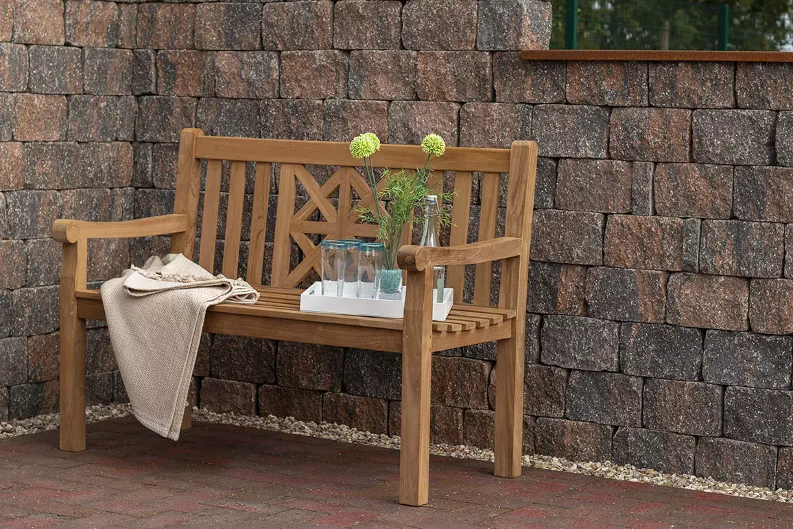 Das Teak Vollholz gewährleistet eine langlebige und witterungsbeständige Materialqualität Ihres neuen Lieblingsstücks. Der warme goldbraune Farbton des robusten Naturholzes behält bei entsprechender Pflege lange seine betörende Leuchtkraft. Dank der Verarbeitung eines von Natur aus harten Massivholzes ist diese edle Gartenbank ausgesprochen robust und stabil. Dadurch wird sie zu einem witterungsbeständigen Begleiter für unzählige Gartensaisonen.