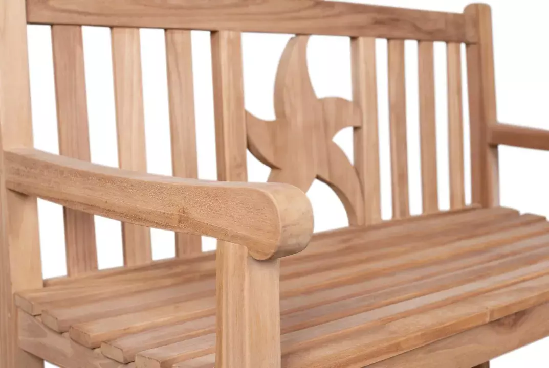 Da die Gartenbank Seestern gänzlich aus witterungsbeständigem Teakholz gefertigt ist, eignet sie sich optimal für die lange und intensive Nutzung unter freiem Himmel. Ihr zeitloses Design kommt durch die einzigartige Maserung und den leuchtend braunen Farbton des Tropenholzes besonders schön zur Geltung. Dank ihrer klassischen Formgebung wird sie sowohl auf Ihrer Terrasse als auch mitten im Grünen zu einem auffallend stilvollen Element Ihrer Outdoor-Gestaltung. Die Gartenbank Seestern muss lediglich von Zeit zu Zeit mit einem geeigneten Pflegemittel behandelt werden, um ihre makellose und betörend natürliche Optik zu erhalten und Sie und Ihre Liebsten durch unzählige Sommersaisonen zu begleiten.