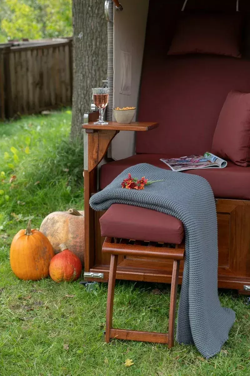 Sie sind schon länger auf der Sucke nach einem sowohl praktischen als auch stilvollem Accessoire für Ihr Wohlfühloase im Freien? Dann haben Sie mit unserer hochwertigen Kuscheldecke grey genau das richtige gefunden! Unsere Kuscheldecke hat die großzügigen Maße von 200cm x 150cm und bietet somit Platz für gemütliche und kuschelige Stunden im Freien – auch bei kühleren Temperaturen. Das edle Design im klasisschen Strickmuster passt hervorragend zu Ihrem Srandkorb, Ihrer Loungegruppe oder in den Hängesessel. Die Einsatzmöglichkeiten sind extrem vielfältig.