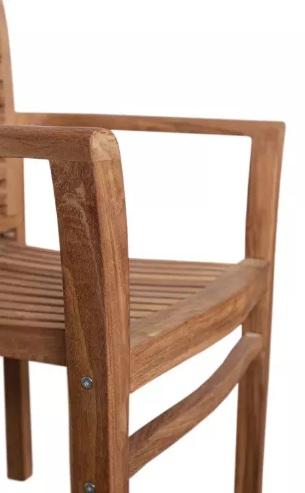 Der Stapelsessel Derby mit Armlehnen ist die ideale Ergänzung für Ihre Outdoor-Wohnlandschaft aus Teak-Vollholz und besticht dank des robusten Naturmaterials durch eine langlebige Qualität. Auch bei intensiver und regelmäßiger Nutzung unter freiem Himmel behält der Stapelsessel Derby lange seine edle Optik. Wenn Sie die elegante graue Patina bevorzugen, die Teak-Vollholz mit der Zeit annimmt, verzichten Sie einfach auf das regelmäßige Einölen und Behandeln mit Spezialwachs. Diese Maßnahmen erhalten hingegen den faszinierend braunen Farbton und die natürlich warme Optik Ihres vielseitig einsetzbaren Outdoor-Sitzmöbels.