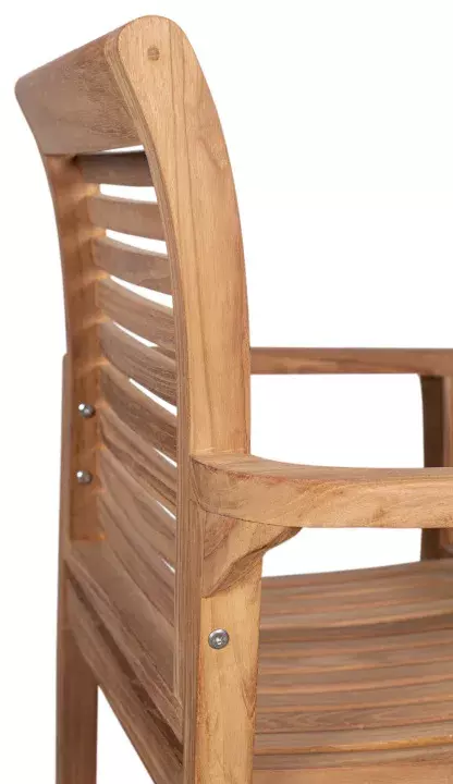 Sie schätzen die natürliche und warme Ausstrahlung von Outdoor-Möbeln aus Teak-Vollholz und suchen nach Sitzgelegenheiten, die flexibel nutzbar sind? Der Teaksessel Derby ist platzsparend stapelbar und dadurch geeignet für Balkon und Garten. Dank seines zeitlosen Designs verströmt dieses praktische Modell aus Teak auch in kleinen Außenbereichen jeder Art eine edle Wirkung. Gleichzeitig lässt sich der Armlehnstuhl Derby sowohl auf einem kleinen Balkon als auch im Haus oder in der Wohnung platzsparend aufbewahren. Wenn Sie über eine große Terrasse verfügen und nur gelegentlich viele Gäste empfangen, ist der Stapelsessel Derby mit Armlehnen die ideale Lösung. Bei Nichtgebrauch platzsparend stapelbar, kommt er immer dann zum Einsatz, wenn sich an warmen Sommertagen oder lauen Abenden größere Gesellschaften bei Ihnen einfinden.