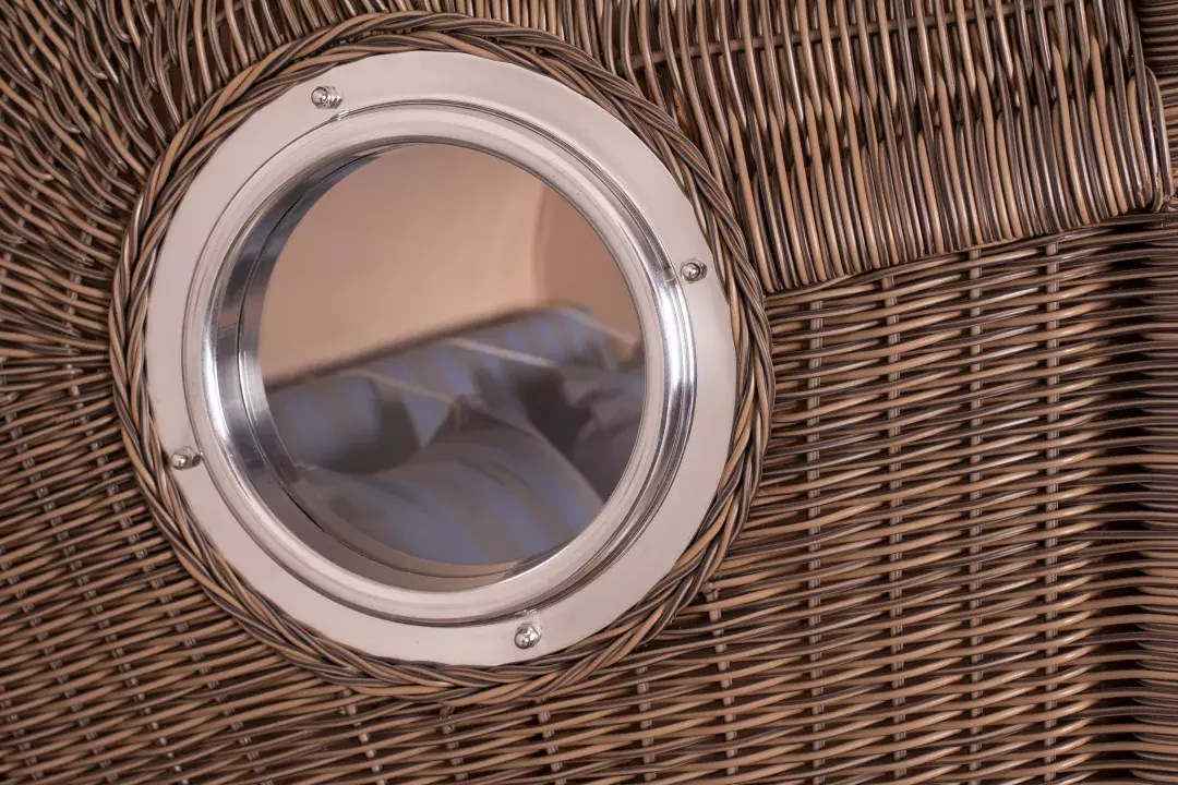 • Bullauge aus hochglänzendem Aluminium mit Sicherheitsglas auf jeder Seite