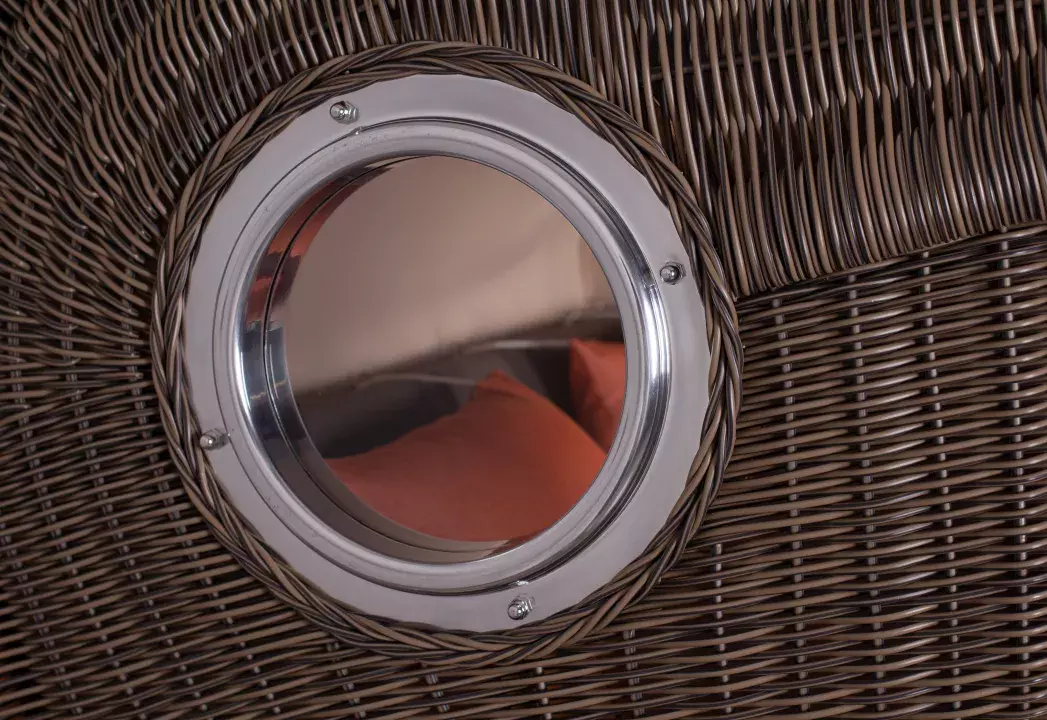 Die ersten Strandkörbe im 19. Jahrhundert wurden traditionell aus Natur-Rattan geflochten. Doch das eher brüchige und nicht besonders langlebige Material wurde längst durch sogenanntes PE(Polyethylen)-Rattan ersetzt. PE-Rattan eignet sich hervorragend für den Einsatz im Outdoorbereich, denn es ist nicht nur witterungs- und UV-Beständig, sondern hält auch großen Temperaturschwankungen stand. Außerdem lässt sich kinderleicht pflegen, denn die glatte Oberfläche ist schmutz- und witterungsabweisend. Das Material besteht aus Polyethylen, einem Kunststoff, der sich, neben den beschriebenen Eigenschaften, zudem vielfältig farblich gestalten lässt und so das Design unserer Strandkorb-Serie Amrum perfekt unterstützt. Die liebevolle Beflechtung der Strandkörbe in Handarbeit, die interessante Gestaltung des Seitenteils mit seinem Sonnengeflecht, sowie die außergewöhnliche Einbindung des Bullauges in den Oberkorb machen den Strandkorb Amrum zu einem Hingucker in Ihrem Outdoorbereich!