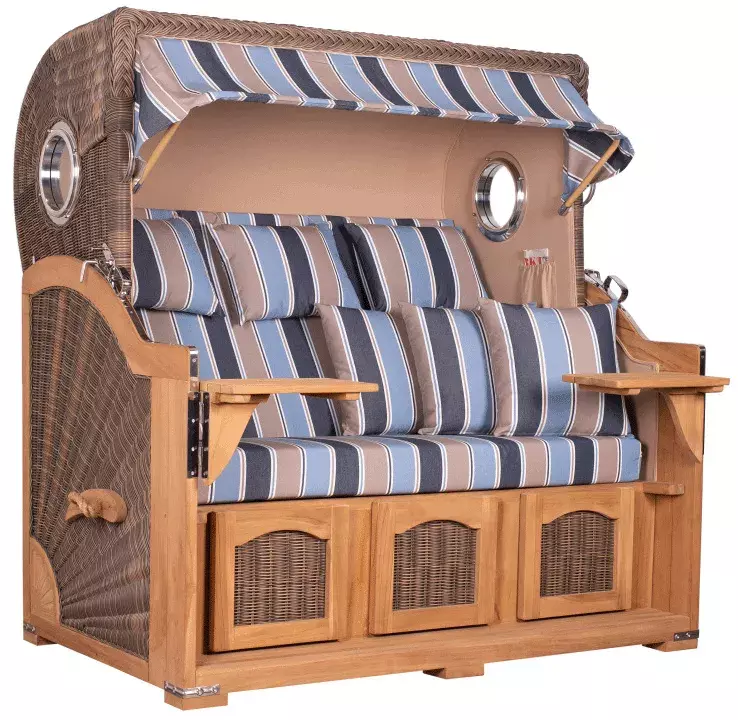 Strandkorb Amrum Grande XXL Teak Bullauge PE Grey Dessin 580