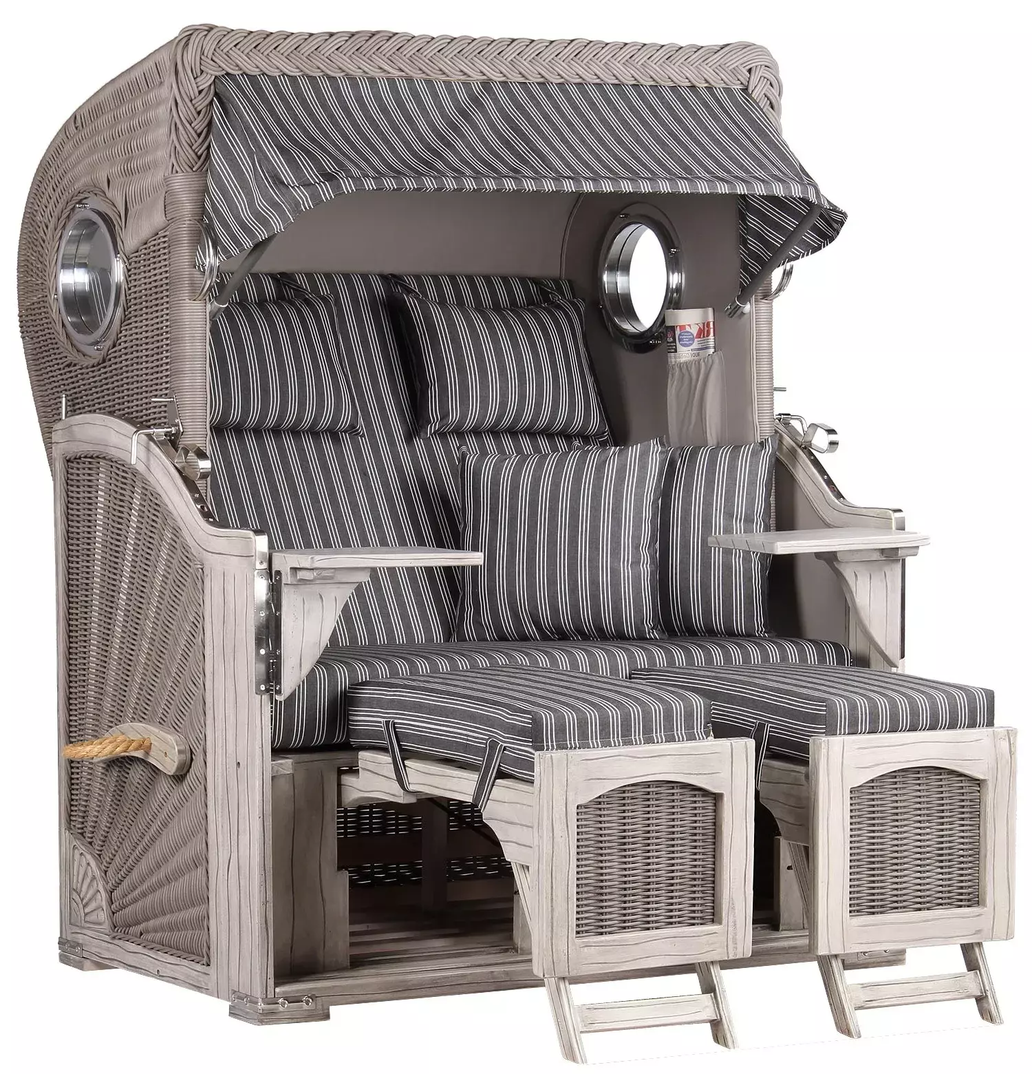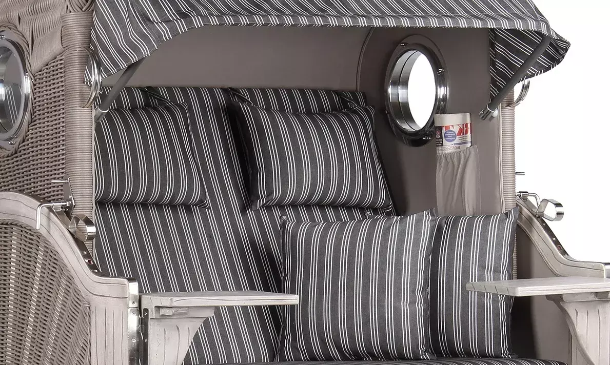 Strandkorb Amrum Mahagoni Washed Grey PE Koboo Grey Dessin 500