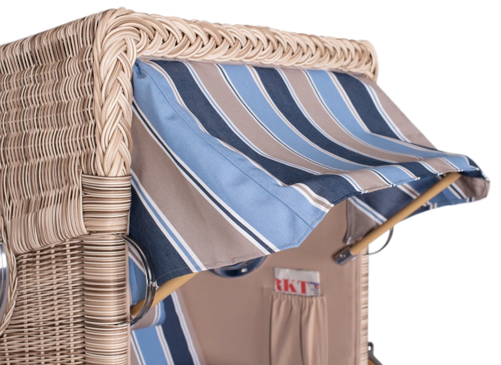 Die ersten Strandkörbe im 19. Jahrhundert wurden traditionell aus Natur-Rattan geflochten. Doch das eher brüchige und nicht besonders langlebige Material wurde längst durch sogenanntes PE(Polyethylen)-Rattan ersetzt. PE-Rattan eignet sich hervorragend für den Einsatz im Outdoorbereich, denn es ist nicht nur witterungs- und UV-Beständig, sondern hält auch großen Temperaturschwankungen stand. Außerdem lässt sich kinderleicht pflegen, denn die glatte Oberfläche ist schmutz- und witterungsabweisend. Das Material besteht aus Polyethylen, einem Kunststoff, der sich, neben den beschriebenen Eigenschaften, zudem vielfältig farblich gestalten lässt und so das Design unserer Strandkorb-Serie Spiekeroog perfekt unterstützt. Die liebevolle Beflechtung der Strandkörbe in Handarbeit und die interessante Gestaltung des Seitenteils mit seinem Sonnengeflecht machen den Strandkorb Spiekeroog Single zu einem Hingucker in Ihrem Outdoorbereich!