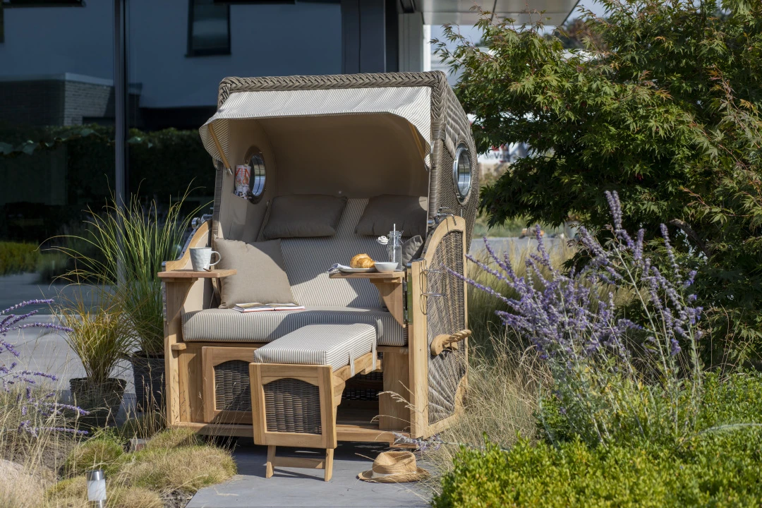 Strandkorb Amrum Teak PE Grey Dessin 505