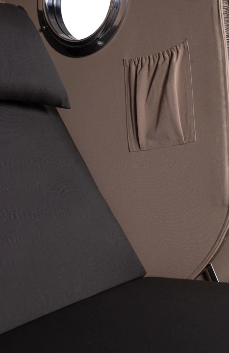 Um das stilvolle Design der Strandkorb-Serie Amrum zu komplettieren, verwenden wir für die Beschläge der Strandkörbe ausschließlich hochwertigen V2A-Edelstahl. Die positiven Eigenschaften des Edelstahls, wie z.B. seine Korrosionsbeständigkeit, unterstreichen den edlen Charakter und heben den maritimen Look des Strandkorbes Amrum hervor. So bestehen nicht nur die Winkelverstärkungen im unteren Bereich des Strandkorbes, sondern auch der Feststellmechanismus aus V2A-Edelstahl. Um den Strandkorb rundum perfekt zu machen, haben wir diesen zudem mit vielen Extras, wie einer bequemen Polsterung, farblich passenden Wurf- und Nackenkissen, Zeitungstaschen, integrierten Armlehnen, schwenkbaren Bistrotischen und einem praktischen Staufach unterhalb der Sitzfläche ausgestattet. Somit lässt der Strandkorb Amrum keine Wünsche offen und bereichert jede Terrasse.