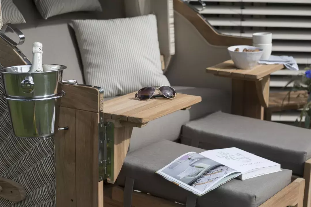 Strandkorb Amrum Teak PE shell Dessin 534