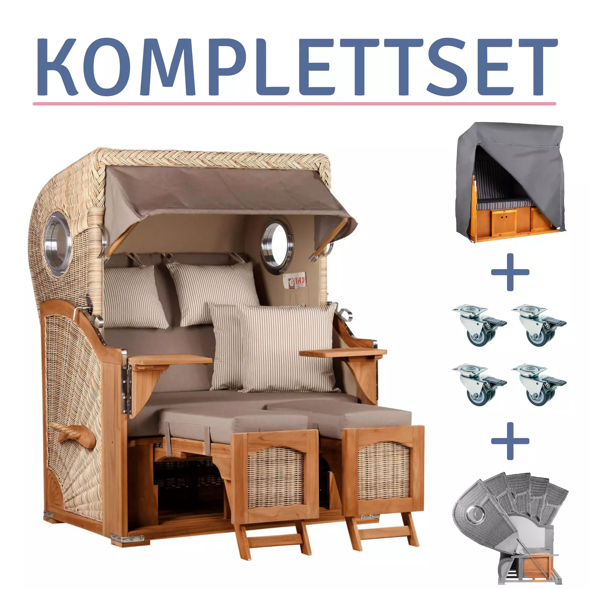 Strandkorb Amrum Teak PE Shell Dessin 534-KOMPLETTSET