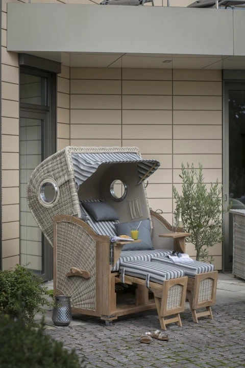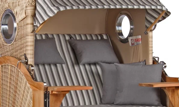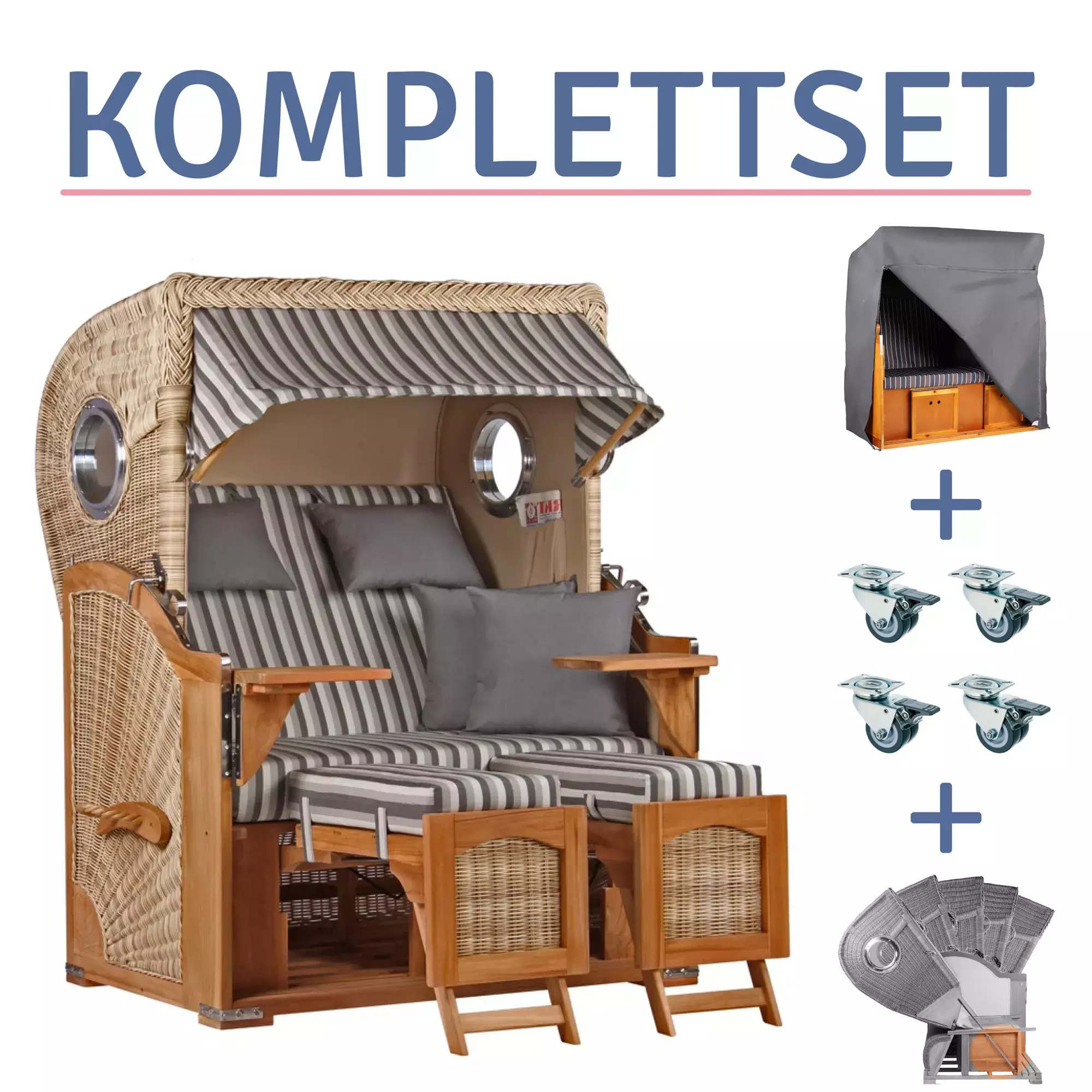 Strandkorb Amrum Teak PE Shell Dessin 545-KOMPLETTSET
