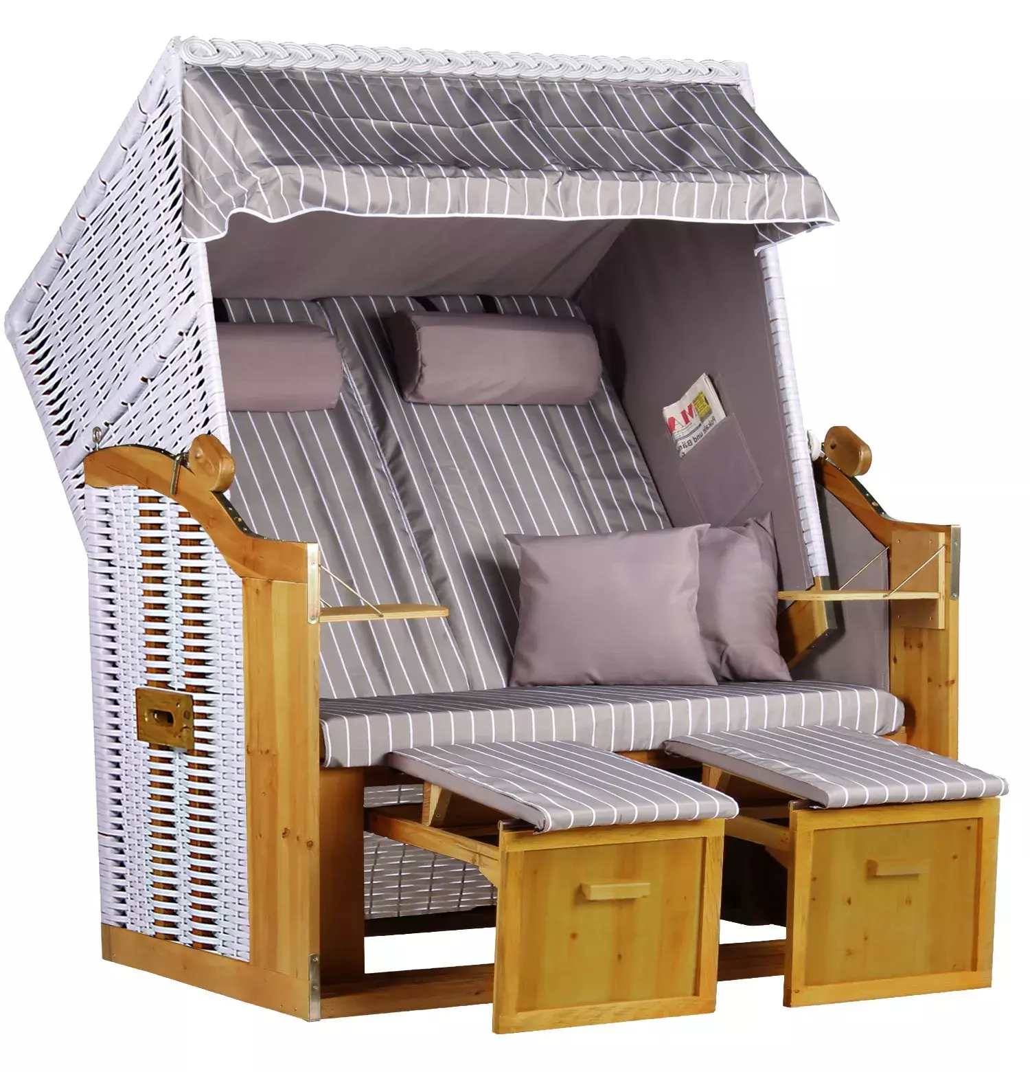 Strandkorb Baltic PE Weiß Dessin Royal Grau