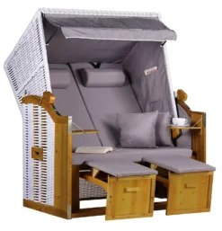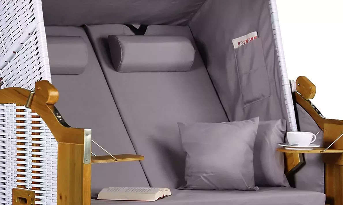 Strandkorb Baltic PE Weiß Dessin Uni Grau