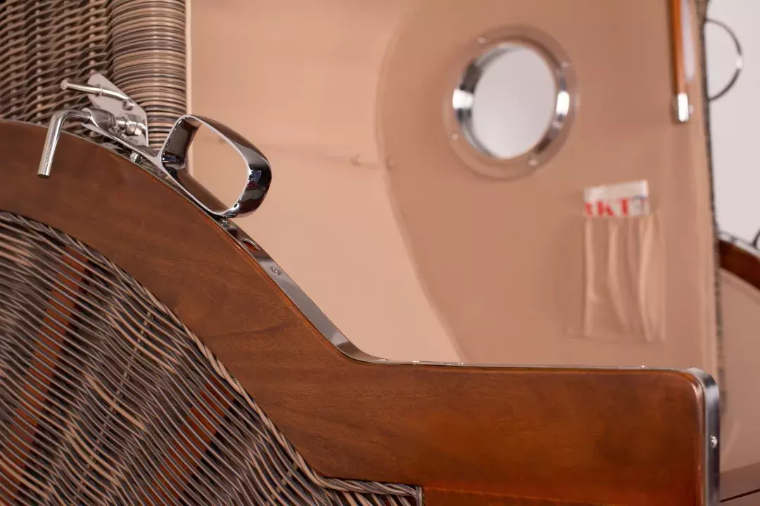 Für unseren Strandkorb Norderney legen wir besonderen Wert auf die liebevolle Verarbeitung hochwertiger Materialien. Aus diesem Grund eignet sich edles Mahagoniholz mit seiner charakteristisch rötlich-braunen Färbung sehr gut für unsere Strandkörbe. Mahagoniholz, traditionell im Schiffsbau eingesetzt, überzeugt auch beim Einsatz im Outdoorbereich durch seine positiven Eigenschaften. Denn Mahagoniholz ist ein besonders hartes Holz, das sehr witterungsbeständig und zudem kaum anfällig für Pilze und Insekten ist. Kurzum, das perfekte Holz nicht nur für Gartenmöbel, sondern auch für unsere hochwertigen Strandkörbe. Der maritime Charakter des rot-braunen Mahagoni-Holzes wird zusätzlich durch die Bullaugen der Strandkorb-Serie Norderney unterstrichen und verleihen diesem seine einzigartige Optik. Um lange Freude am Strandkorb Norderney zu haben, empfehlen wir die regelmäßige Lackierung des Holzes mit einem offenporigen PU-Lack. So wird der Strandkorb Norderney sicherlich auch bald zu Ihrem Lieblingsstück auf der Terrasse!
