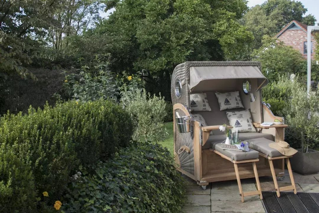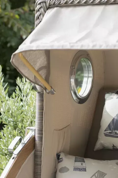 Strandkorb Norderney Teak Bullauge PE Grey Dessin 544