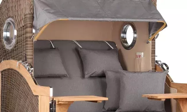 Strandkorb Norderney Teak Bullauge PE Grey Dessin 551