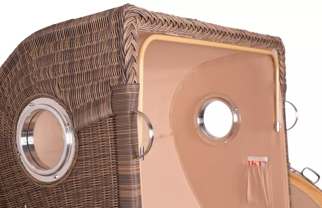 Die ersten Strandkörbe im 19. Jahrhundert wurden traditionell aus Natur-Rattan geflochten. Doch das eher brüchige und nicht besonders langlebige Material wurde längst durch sogenanntes PE(Polyethylen)-Rattan ersetzt. PE-Rattan eignet sich hervorragend für den Einsatz im Outdoorbereich, denn es ist nicht nur witterungs- und UV-Beständig, sondern hält auch großen Temperaturschwankungen stand. Außerdem lässt sich kinderleicht pflegen, denn die glatte Oberfläche ist schmutz- und witterungsabweisend. Das Material besteht aus Polyethylen, einem Kunststoff, der sich, neben den beschriebenen Eigenschaften, zudem vielfältig farblich gestalten lässt und so das Design unserer Strandkorb-Serie Norderney perfekt unterstützt. Die liebevolle Beflechtung der Strandkörbe in Handarbeit, die interessante Gestaltung des Seitenteils mit seinem Sonnengeflecht, sowie die außergewöhnliche Einbindung des Bullauges in den Oberkorb machen den Strandkorb Norderney zu einem Hingucker in Ihrem Outdoorbereich!