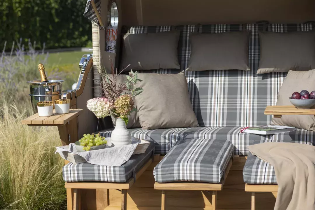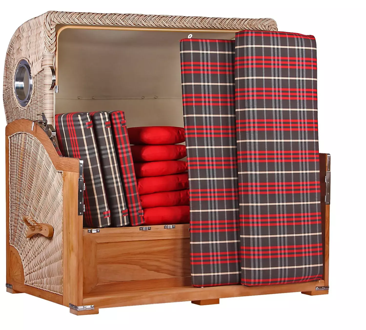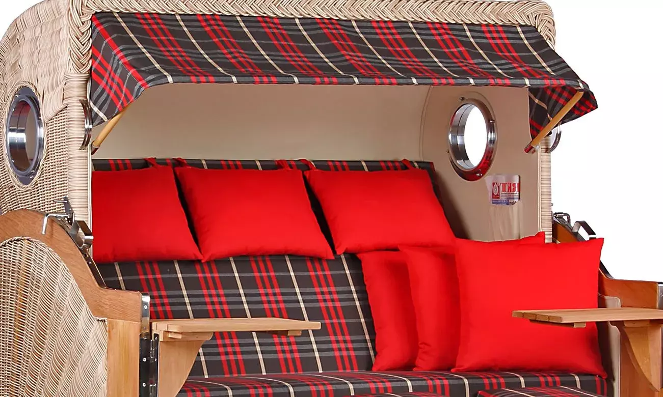 Strandkorb Norderney XXL Teak Bullauge PE Shell Dessin 529