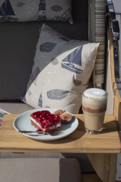 Um das stilvolle Design der Strandkorb-Serie Norderney zu komplettieren, verwenden wir für die Beschläge der Strandkörbe ausschließlich hochwertigen V2A-Edelstahl. Die positiven Eigenschaften des Edelstahls, wie z.B. seine Korrosionsbeständigkeit, unterstreichen den edlen Charakter und heben den maritimen Look des Strandkorbes Norderney hervor. So bestehen nicht nur die Winkelverstärkungen im unteren Bereich des Strandkorbes, sondern auch der Feststellmechanismus aus V2A-Edelstahl. Um den Strandkorb rundum perfekt zu machen, haben wir diesen zudem mit vielen Extras, wie einer bequemen Polsterung, farblich passenden Wurf- und Nackenkissen, Zeitungstaschen, integrierten Armlehnen, schwenkbaren Bistrotischen und einem praktischen Staufach unterhalb der Sitzfläche ausgestattet. Somit lässt der Strandkorb Norderney keine Wünsche offen und bereichert jede Terrasse.