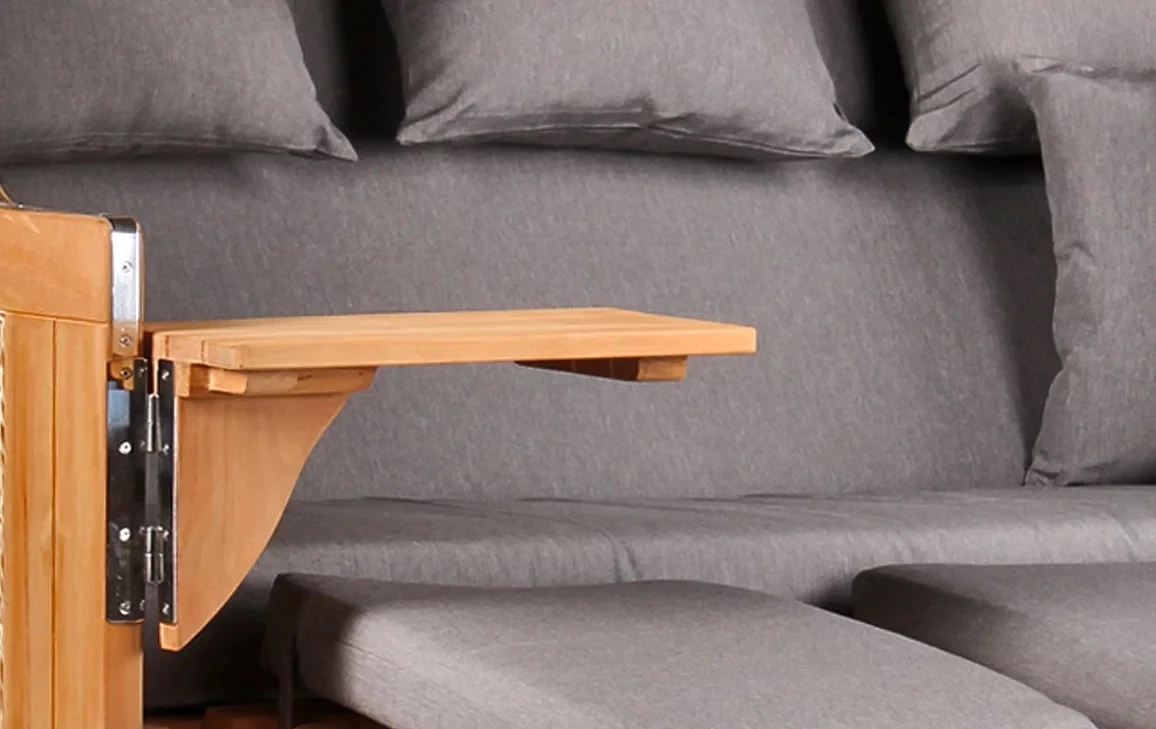 Mit dem optional erhältlichen Lifter-System zum Strandkorb Norderney XXL lässt sich der Oberkorb jetzt noch leichter in seinen Positionen verstellen. Der aus massivem Teakholz gefertigte Strandkorb kann so auch von einer Person spielend leicht eingestellt werden. Sprechen Sie uns an – wir beraten Sie gerne!