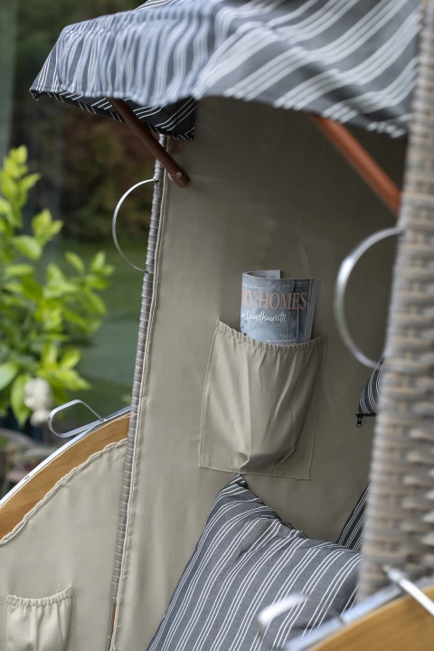 Stilvoller Luxus im Strandkorb Schleswig Pinie in Mokka Braun mit Dessin 563