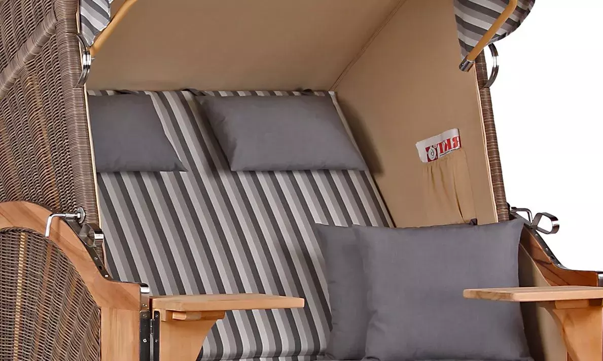 Die ersten Strandkörbe im 19. Jahrhundert wurden traditionell aus Natur-Rattan geflochten. Doch das eher brüchige und nicht besonders langlebige Material wurde längst durch sogenanntes PE(Polyethylen)-Rattan ersetzt. PE-Rattan eignet sich hervorragend für den Einsatz im Outdoorbereich, denn es ist nicht nur witterungs- und UV-beständig, sondern hält auch großen Temperaturschwankungen stand. Außerdem lässt sich kinderleicht pflegen, denn die glatte Oberfläche ist schmutz- und witterungsabweisend. Das Material besteht aus Polyethylen, einem Kunststoff, der sich, neben den beschriebenen Eigenschaften, zudem vielfältig farblich gestalten lässt und so das Design unserer Strandkorb-Serie Spiekeroog perfekt unterstützt. Die liebevolle Beflechtung der Strandkörbe in Handarbeit und die interessante Gestaltung des Seitenteils mit seinem Sonnengeflecht machen den Strandkorb Spiekeroog zu einem Hingucker in Ihrem Outdoorbereich!
